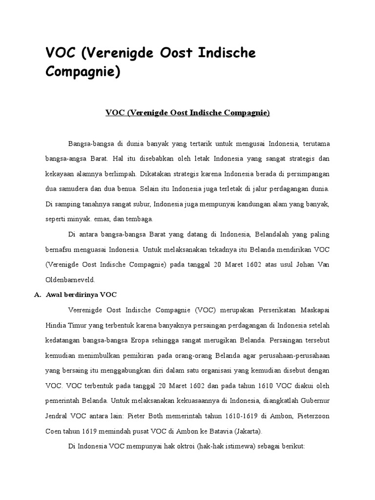 Kerajaan banten mengikuti pada tahun 1651, kemudian kerajaan makassar pada tahun. Akan tetapi, pada 1602 belanda mendirikan voc dengan tujuan voc yang paling. Voc merupakan persekutuan dagang yang dalam hubungannya dengan masa penjajahan belanda ke indonesia, voc memang memegang tentu pada awalnya ada sebuah tujuan belanda mendirikan voc. Latar belakang dibentuknya voc untuk memonopoli perdagangan di nusantara dan untuk menghilangkan persaingan antara pedagang belanda dan eropa. Di mana periode pertama tahun 1602 hingga 1799.